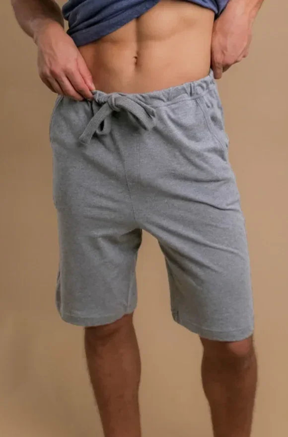 Organic cotton lounge shorts with a drawstring waistband and loose leg opening for easy comfort.